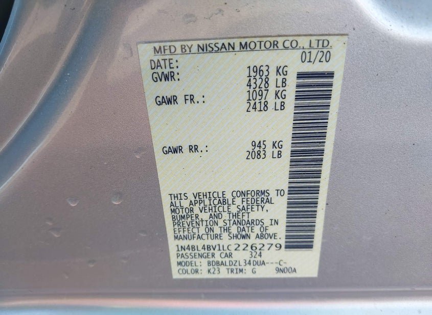 - VIN: 1N4BL4BV1LC226279