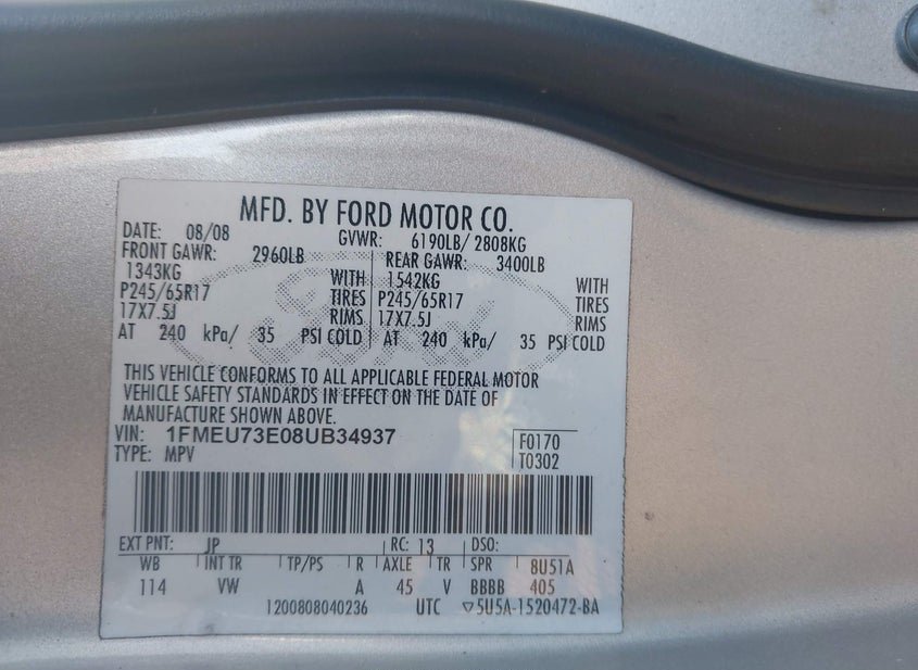 - VIN: 1FMEU73E08UB34937