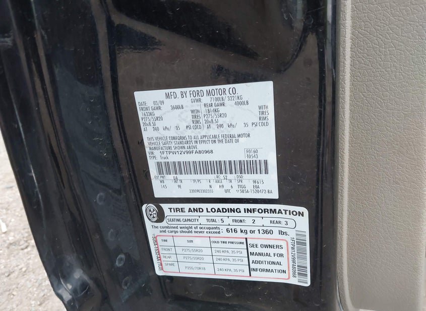 - VIN: 1FTPW12V99FA80968