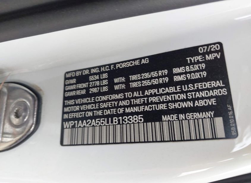 - VIN: WP1AA2A55LLB13385