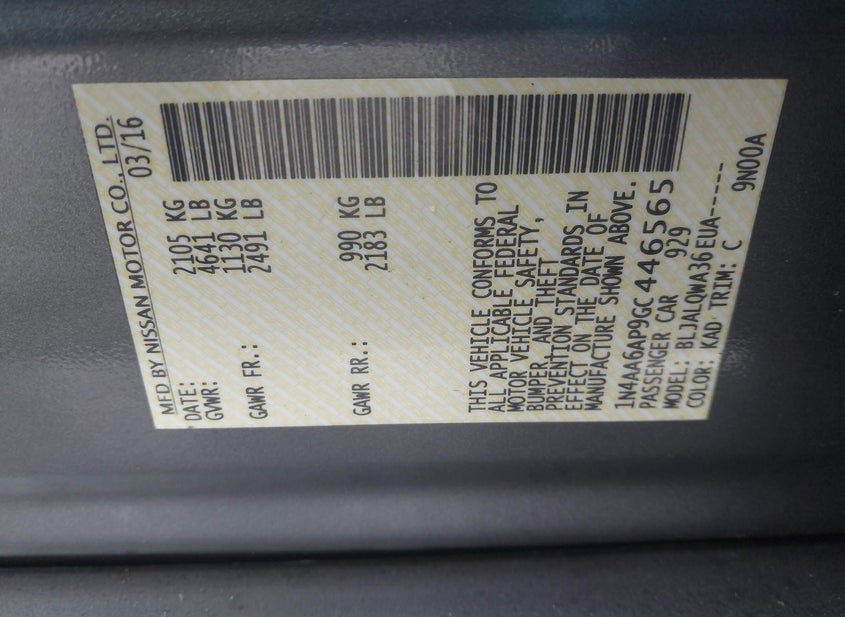 - VIN: 1N4AA6AP9GC446565