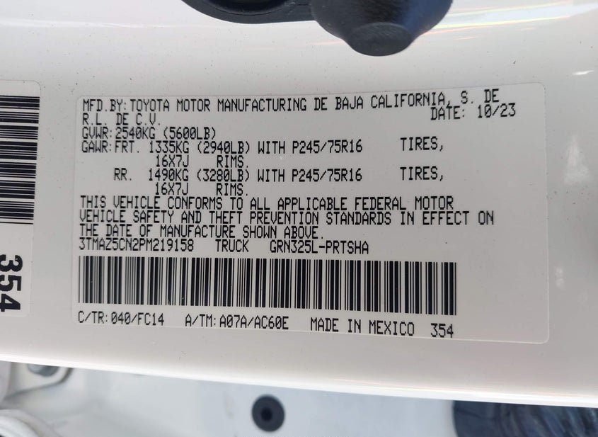 - VIN: 3TMAZ5CN2PM219158