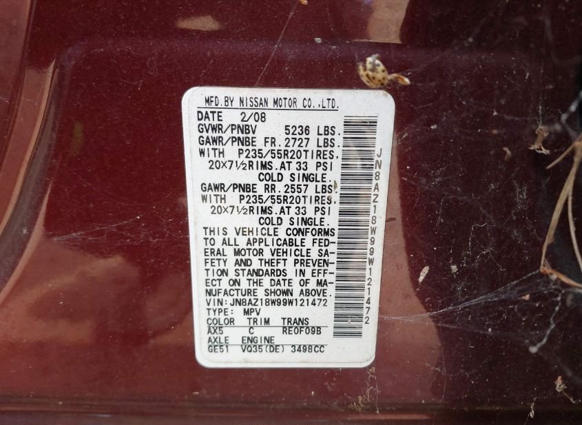 - VIN: JN8AZ18W99W121472