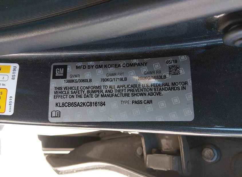 - VIN: KL8CB6SA2KC816184