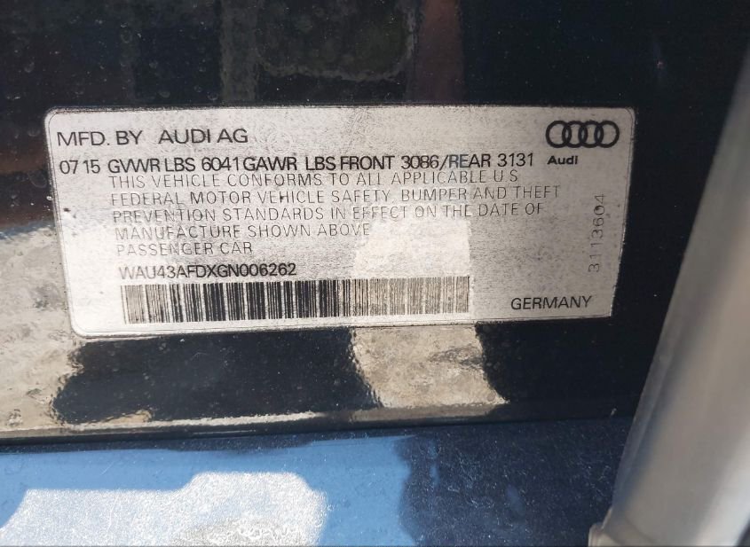 - VIN: WAU43AFDXGN006262