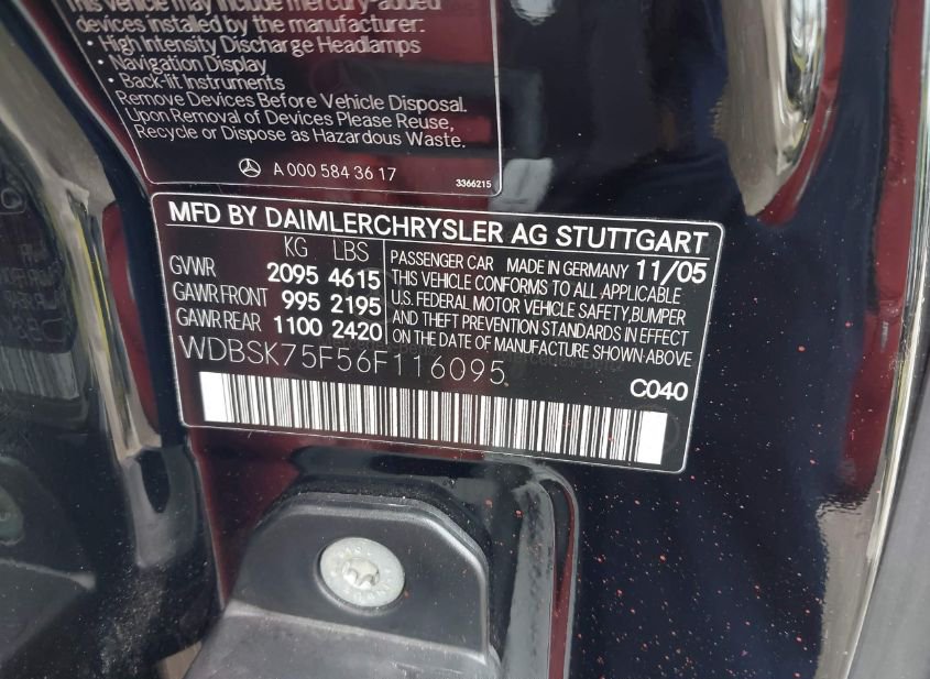 - VIN: WDBSK75F56F116095