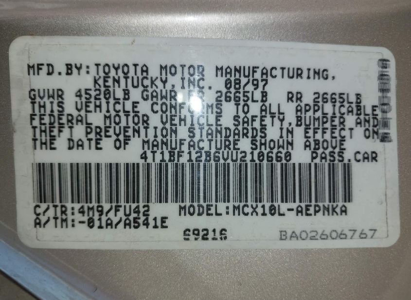 - VIN: 4T1BF12B6VU210660