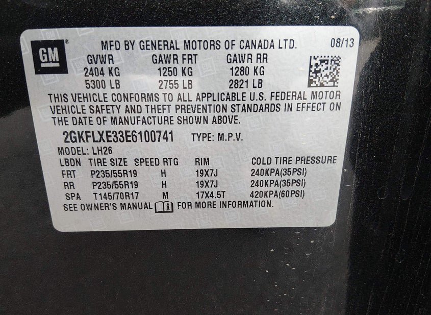 - VIN: 2GKFLXE33E6100741