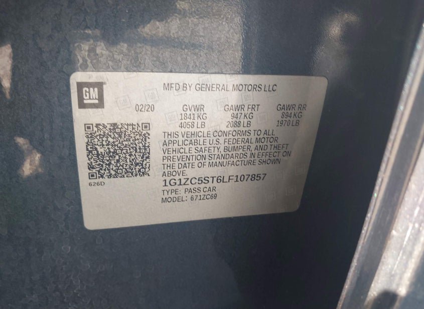 - VIN: 1G1ZC5ST6LF107857