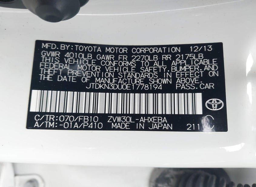 - VIN: JTDKN3DU0E1778194