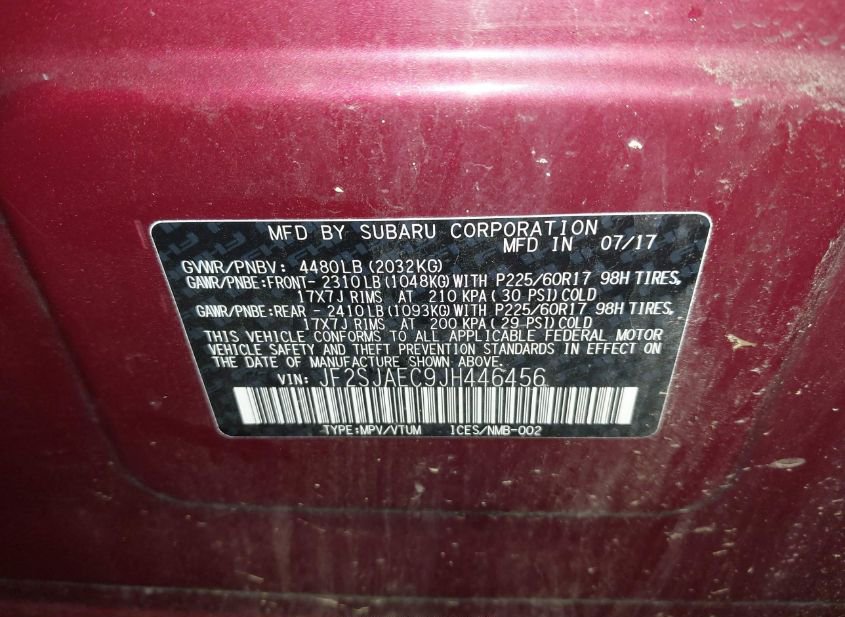 - VIN: JF2SJAEC9JH446456