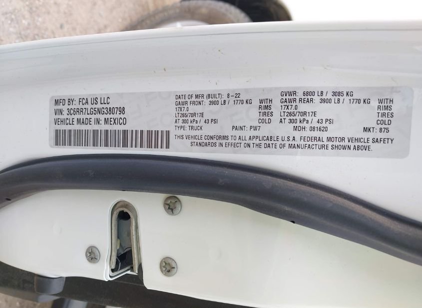 - VIN: 3C6RR7LG5NG380798