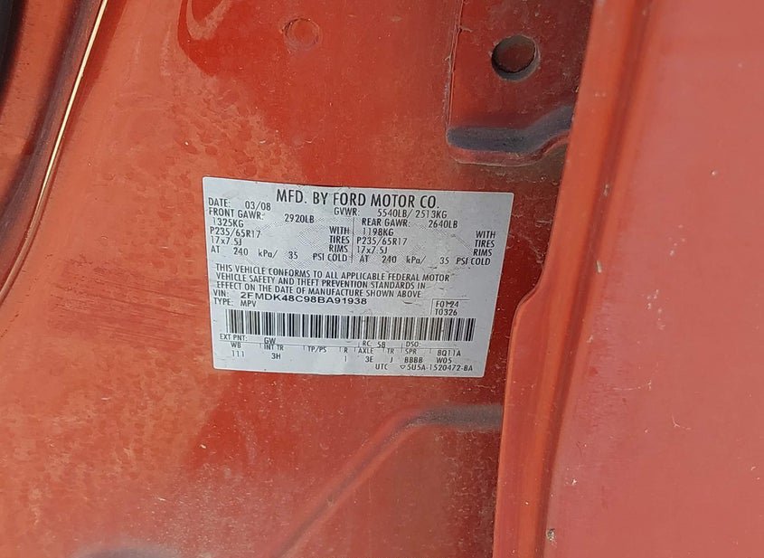 - VIN: 2FMDK48C98BA91938