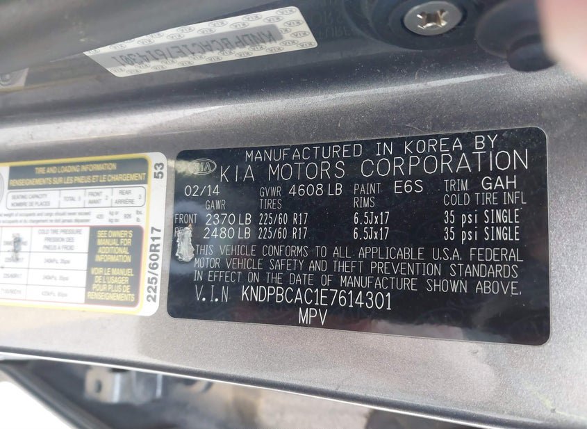 - VIN: KNDPBCAC1E7614301