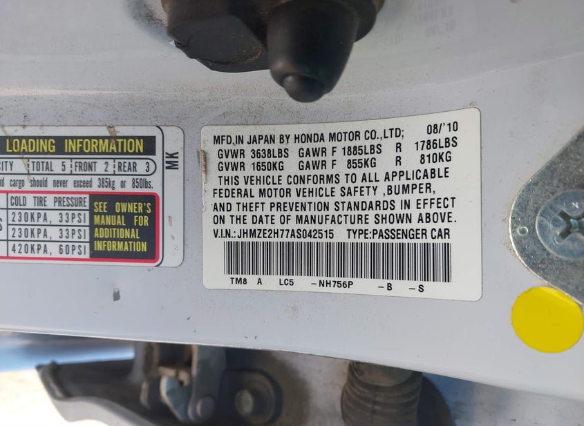 - VIN: JHMZE2H77AS042515