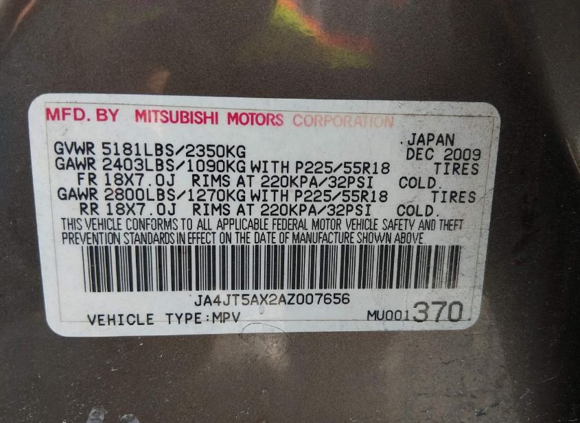 - VIN: JA4JT5AX2AZ007656