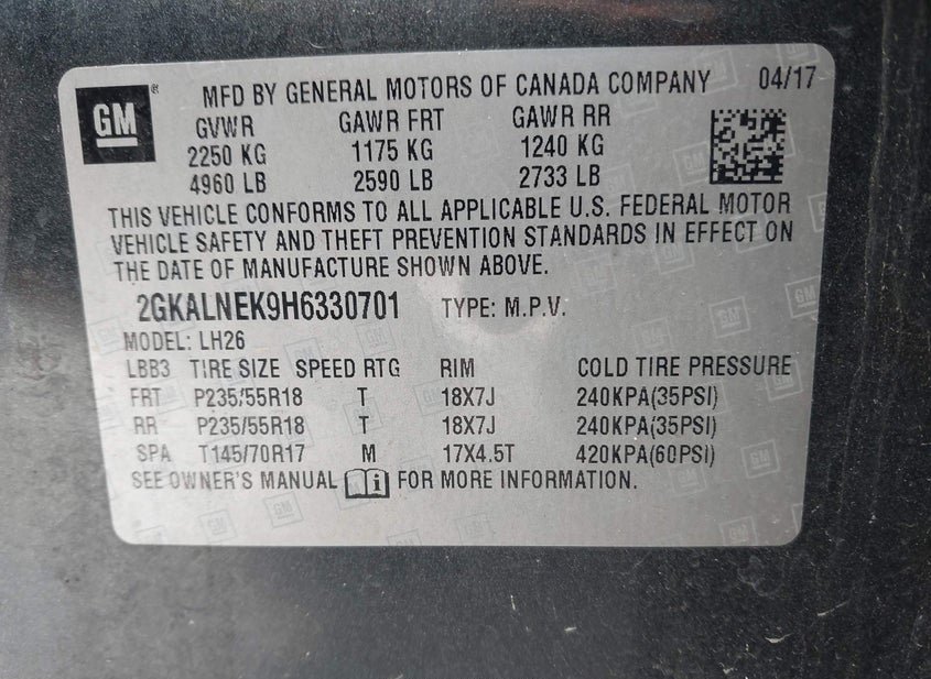 - VIN: 2GKALNEK9H6330701