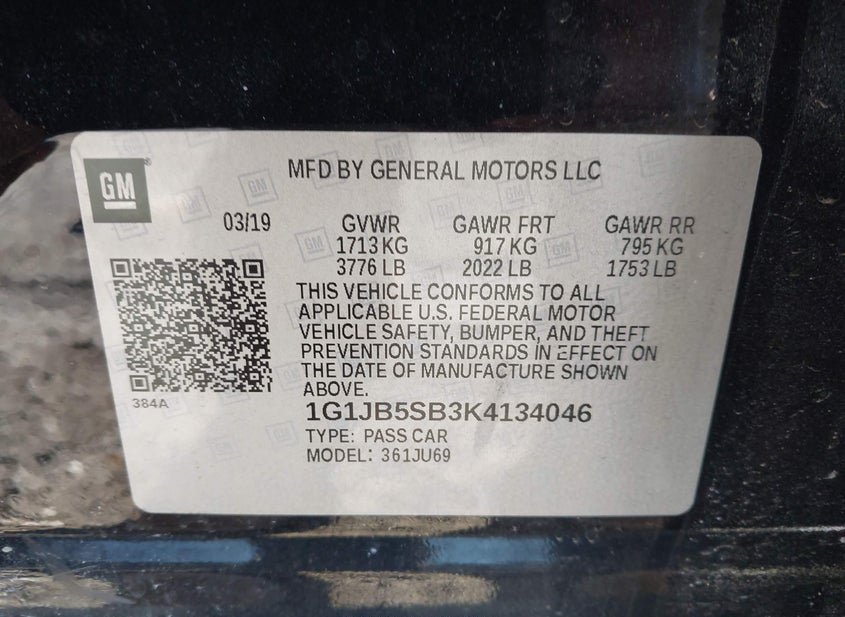 - VIN: 1G1JB5SB3K4134046