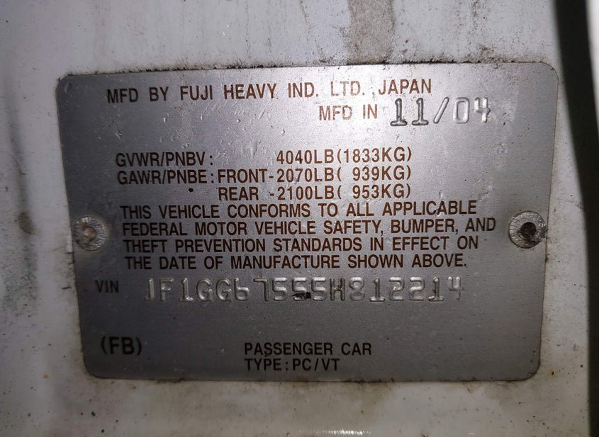 - VIN: JF1GG67555H812214