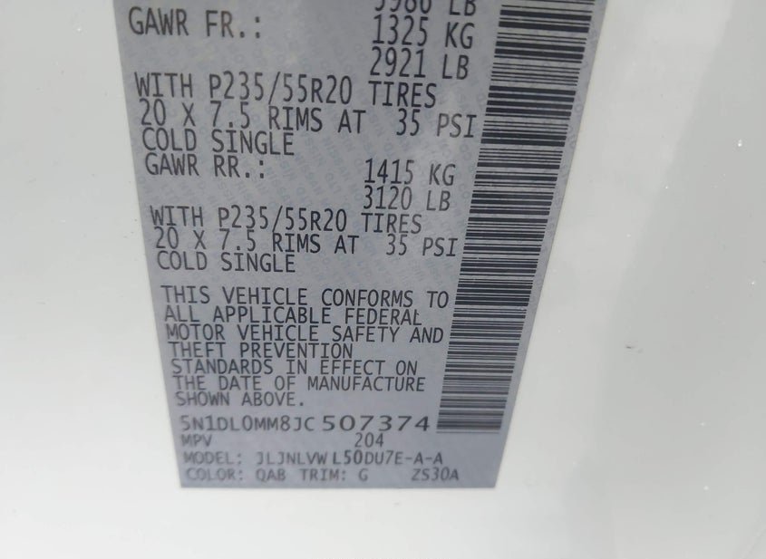- VIN: 5N1DL0MM8JC507374