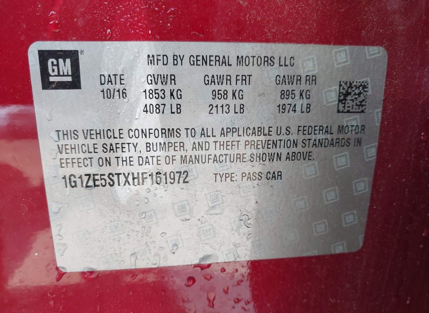 - VIN: 1G1ZE5STXHF161972