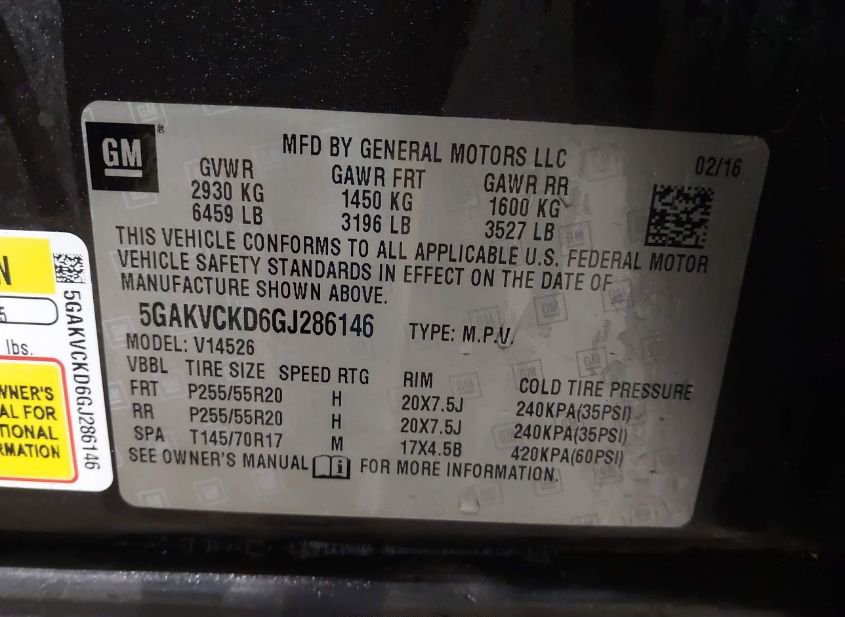 - VIN: 5GAKVCKD6GJ286146