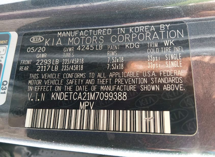 - VIN: KNDETCA21M7099388