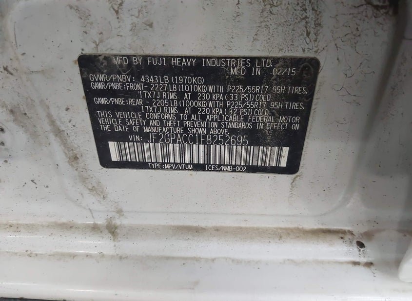 - VIN: JF2GPACC1F8252695