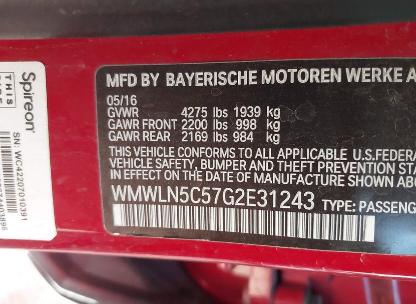 - VIN: WMWLN5C57G2E31243