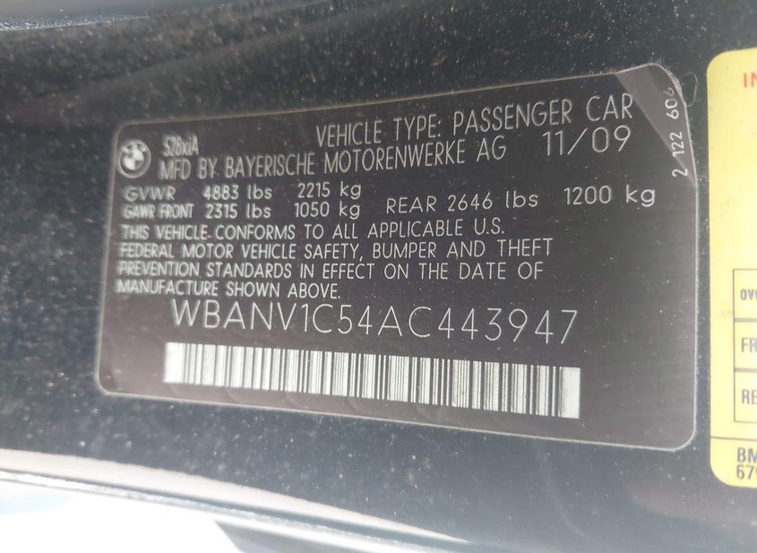 - VIN: WBANV1C54AC443947