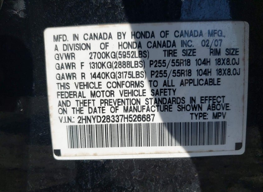 - VIN: 2HNYD28337H526687