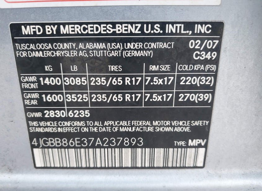 - VIN: 4JGBB86E37A237893