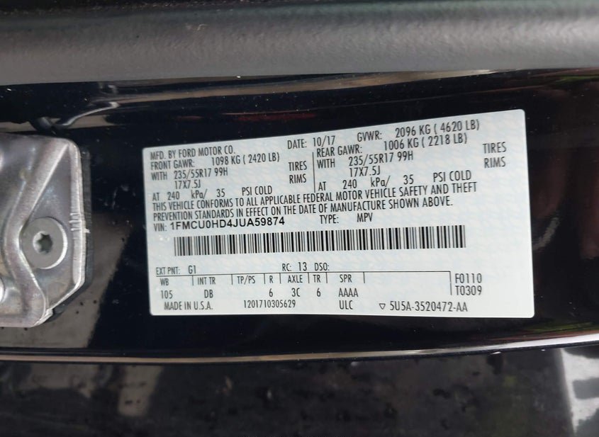 - VIN: 1FMCU0HD4JUA59874