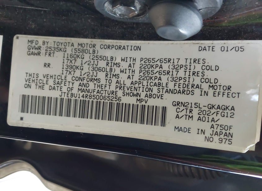 - VIN: JTEBU14R850065256