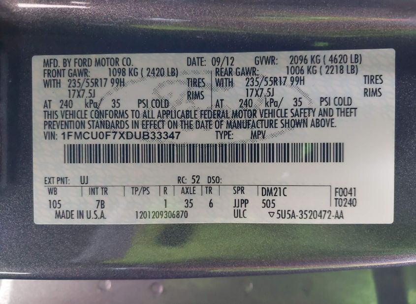 - VIN: 1FMCU0F7XDUB33347