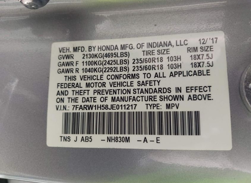 - VIN: 7FARW1H58JE011217
