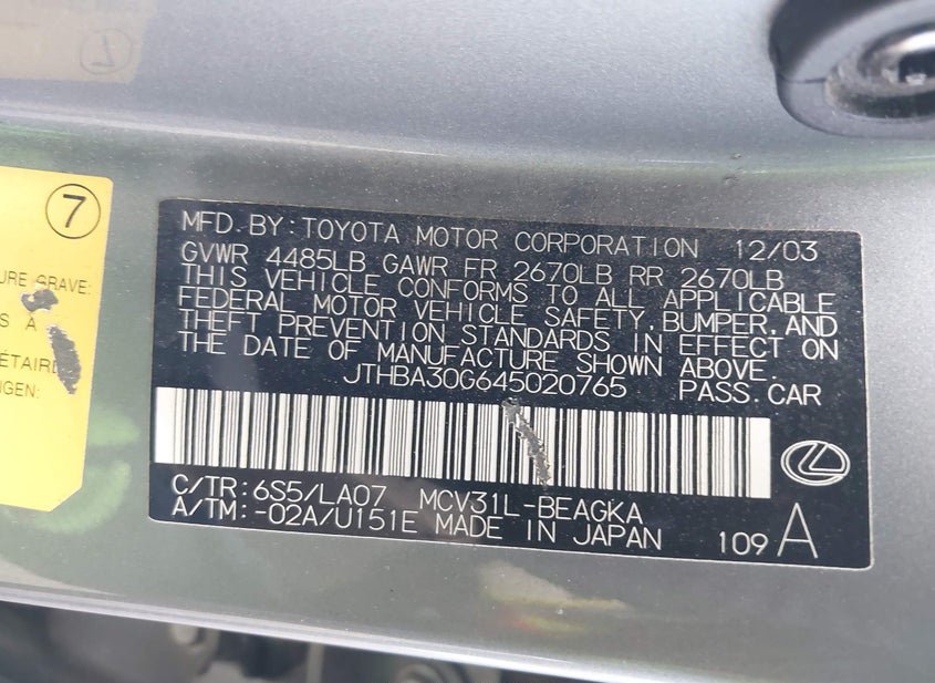 - VIN: JTHBA30G645020765