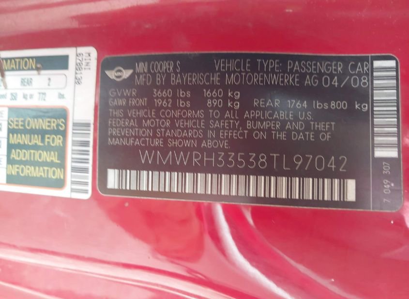 - VIN: WMWRH33538TL97042
