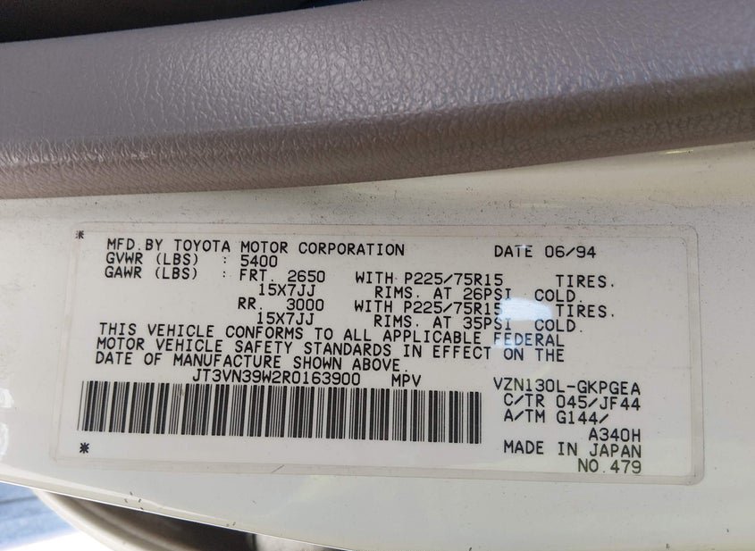 - VIN: JT3VN39W2R0163900