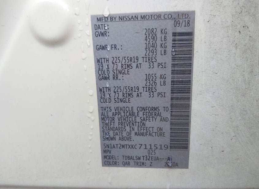- VIN: 5N1AT2MTXKC711519
