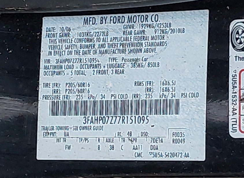 - VIN: 3FAHP07Z77R151095