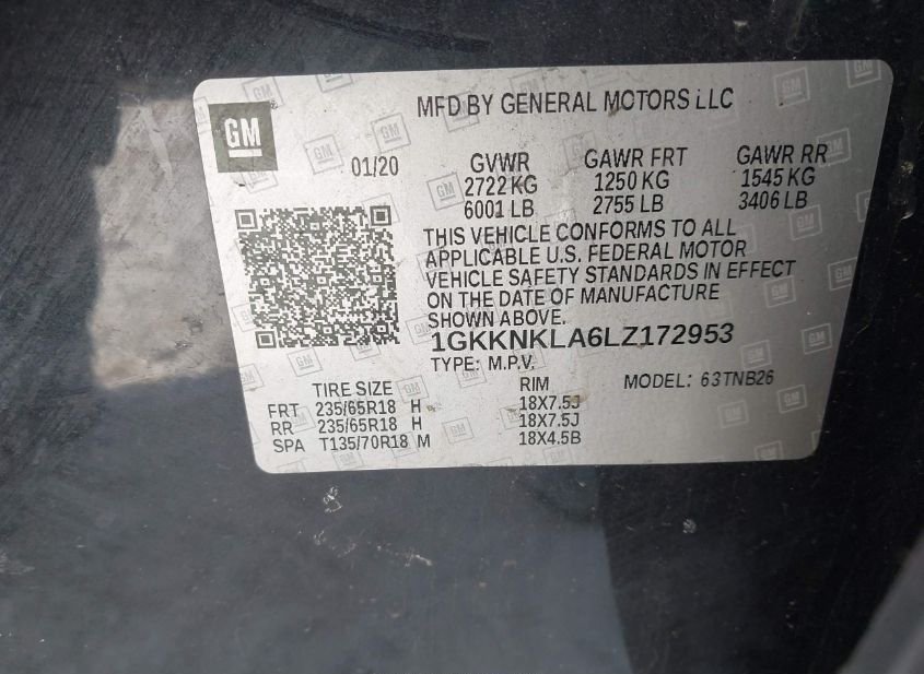 - VIN: 1GKKNKLA6LZ172953