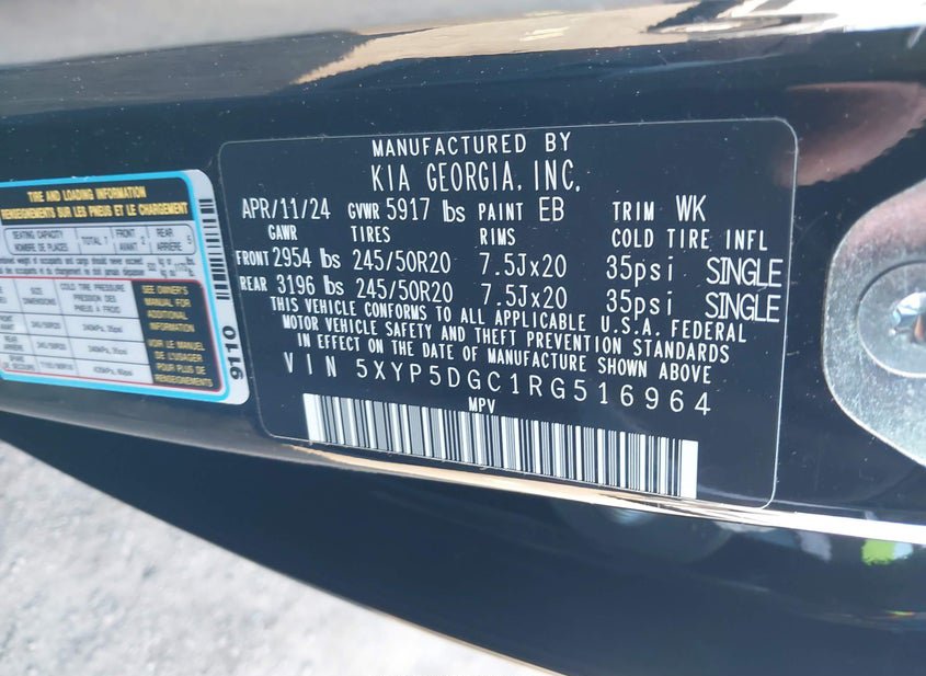 - VIN: 5XYP5DGC1RG516964