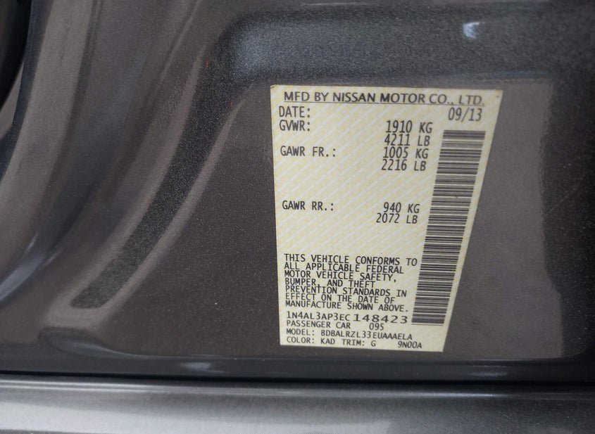 - VIN: 1N4AL3AP3EC148423