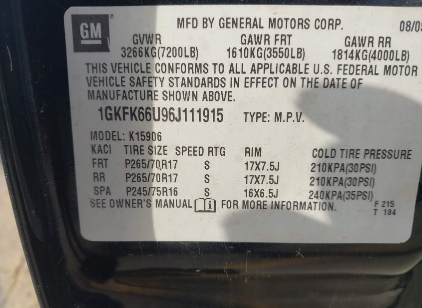 - VIN: 1GKFK66U96J111915
