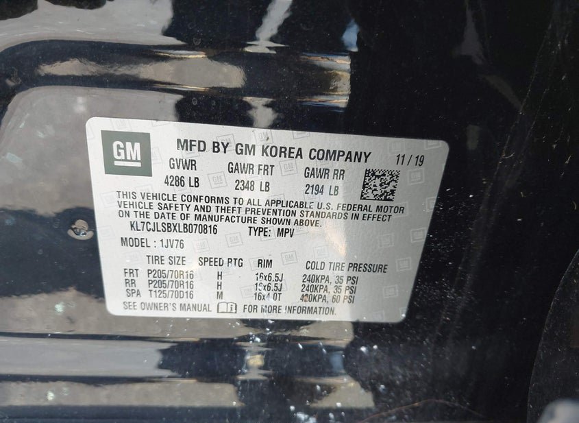 - VIN: KL7CJLSBXLB070816