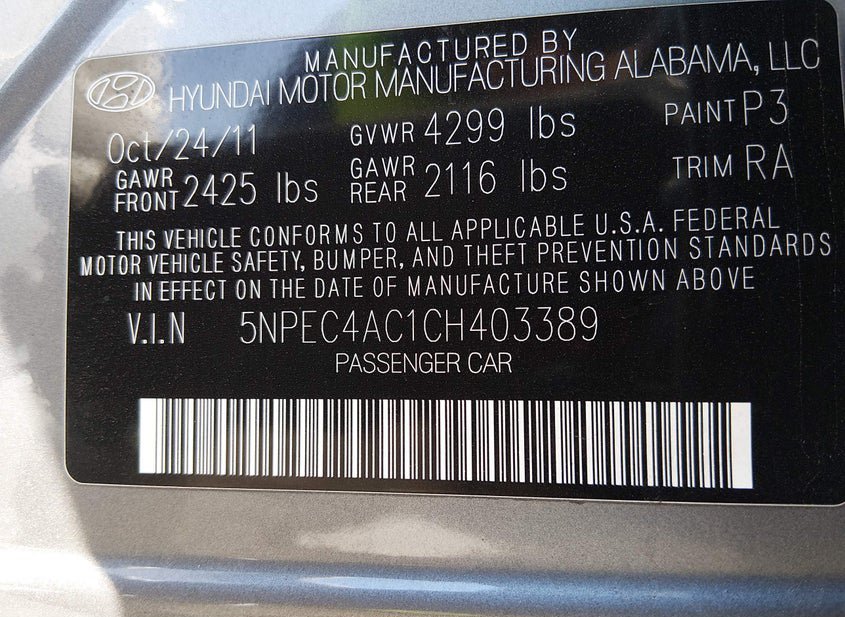 - VIN: 5NPEC4AC1CH403389