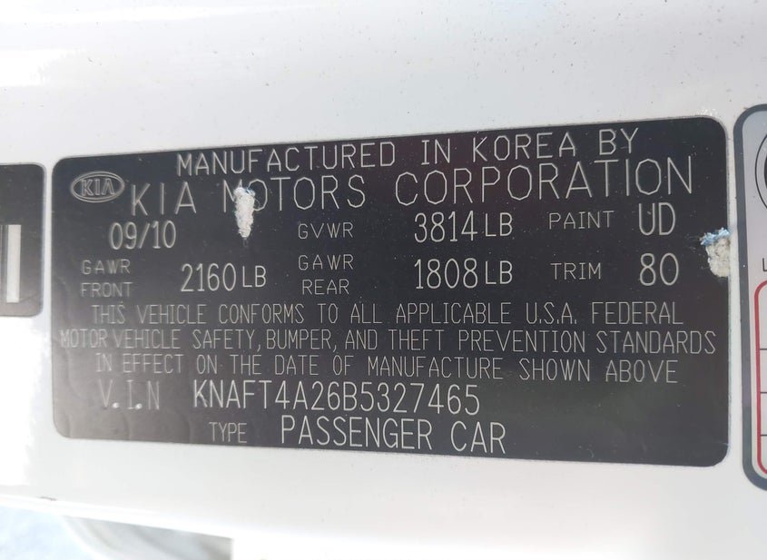 - VIN: KNAFT4A26B5327465