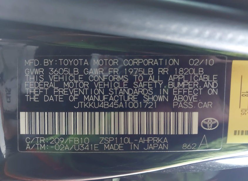- VIN: JTKKU4B45A1001721