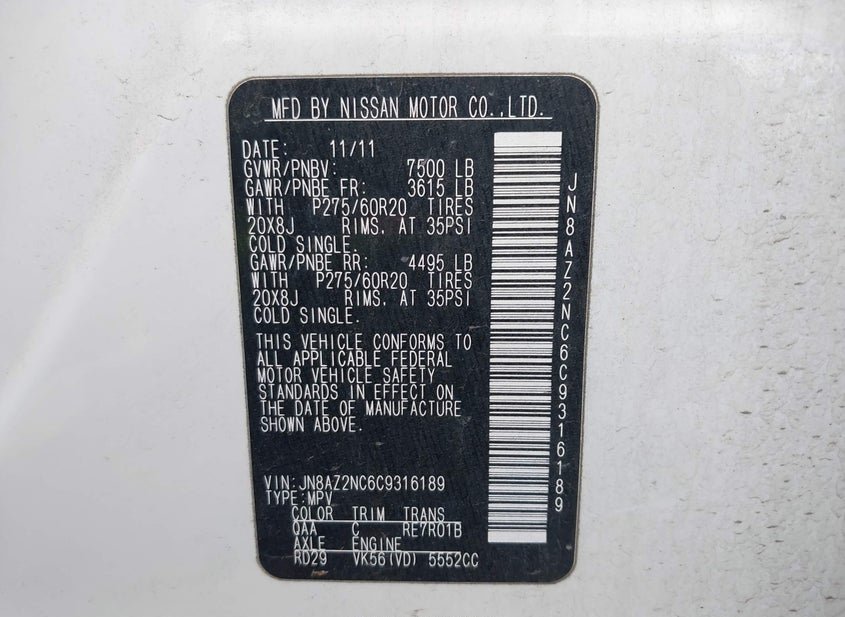 - VIN: JN8AZ2NC6C9316189